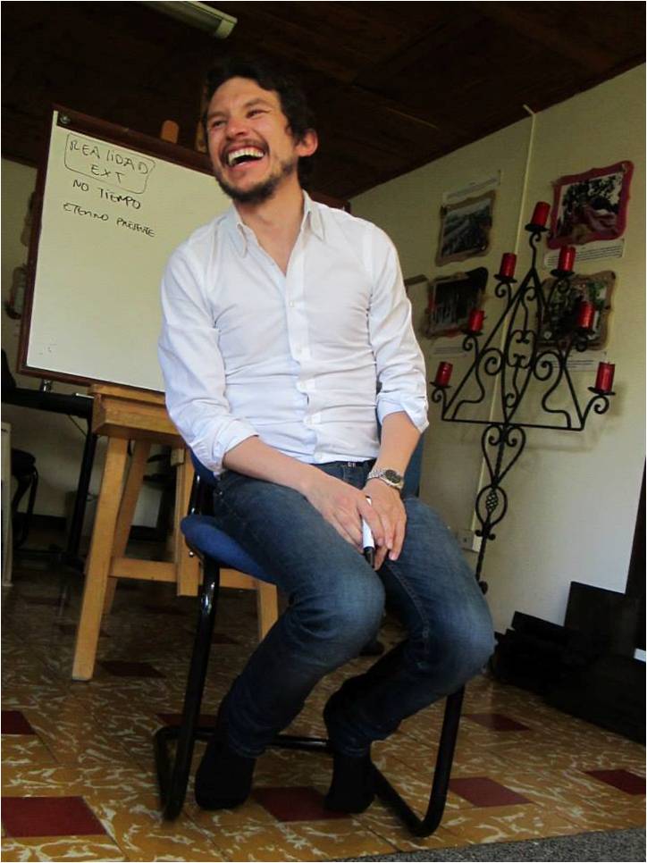 David: Si, pero yo solo enseño lo que para mí tiene sentido. No revendo algo que han escrito los demás. Para mi si lo haces así, eres un comerciante. Lo que yo enseño es mi propia experiencia a partir de lo que he estudiado. Nunca oculto mis fuentes, pero presento lo que dicen a través de lo que observo en el mundo: en mi esposa, mi padre, el hijo de mi mujer, los amigos, los estudiantes etc. Lo que a mí me interesan son las comprensiones que saco de los maestros como Martinus. Por ejemplo, un tema podía ser: ¿Cómo consigo una relación armónica con mi pareja? Yo, ahora, después de 20 años de tonterías, tengo una relación muy hermosa con mi pareja. Bueno, todo lo que hice para llegar a esta situación lo convierto en una estructura para un curso y lo estudiamos. Ellos comparten sus experiencias y las analizamos espiritualmente. Yo veo mi misión como adaptación de la información que dicen los maestros así que tenga más relevancia aquí y ahora. Gerardo y Martinus tienen la misma fuente, pero dicen las cosas de maneras diferentes. Yo veo mi tarea como adaptar esa información para la vida diaria, para tu contorno y tu contexto. El contexto de Colombia, Ecuador e Iberoamérica es el que me corresponde y mi misión es adaptar la información espiritual para ese contexto. La espiritualidad no es necesariamente algo muy solemne y serio, vestido de blanco, sino que es algo que vivimos cada día cuando reímos y nos burlamos, está en la vida en cada momento.